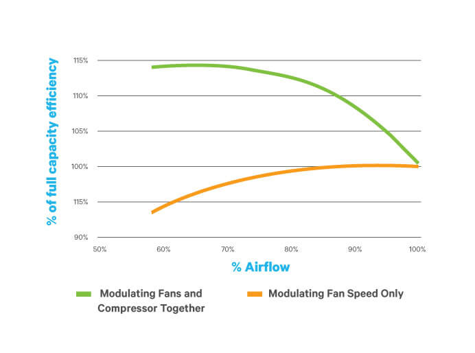 - Offers energy efficient variable speed EC fans on downflow configurations